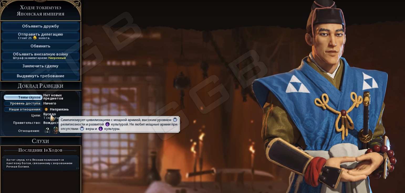 Так купцы, дипломаты, шпионы, что будут находиться на территории иностранного государства, смогут держать свои глаза и уши открытыми и передавать вам информацию не только о движении войск и проводимых сделках с иными государствами, но и о том, что думает данный лидер о вас, как правителе, и о вашей империи в целом. А потому заключать сделки с лидером будет гораздо проще.