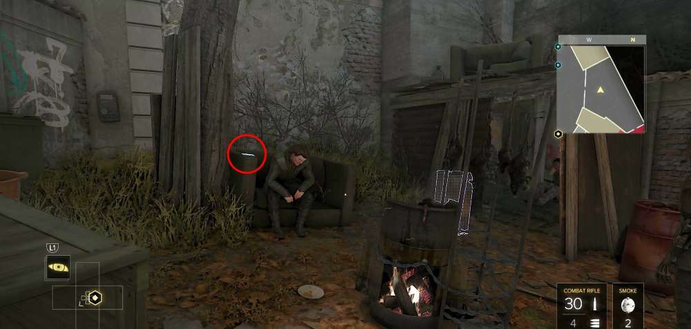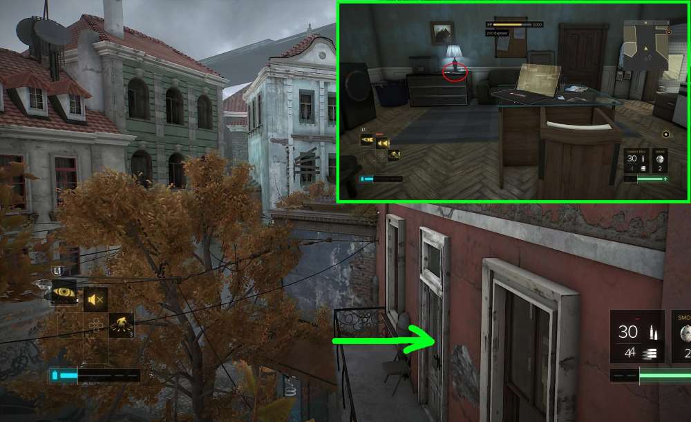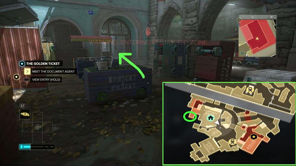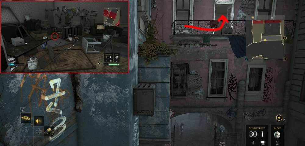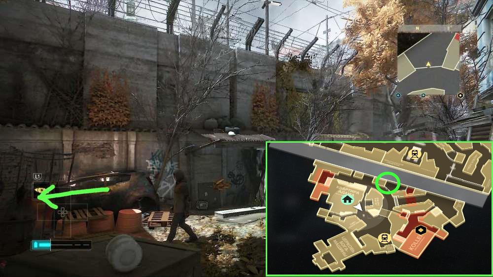 На КПП района. Активируйте лифт близ арки и поднимитесь на нем. Перепрыгните по уступам и окажитесь на балконе над КПП. Заходите в квартиру и найдете книгу на полу.