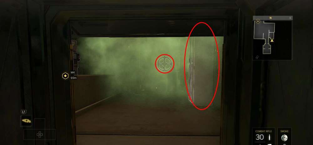 Укрытие Коллера. Коридор с картинами. Обратите внимание на крайнюю картинку справа. Сдвиньте её и пролезьте через вентиляционную шахту. Далее вы окажитесь в комнате, заполненной ядовитым газом. Чтобы отключить подачу оного, поверните клапан, а затем можно осмотреть шкафчик и найти книгу.