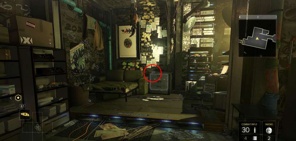 За квартирой Дженсена найдется завод. Пройдите первую лазерную ловушку, и у высокого окна найдется книга.