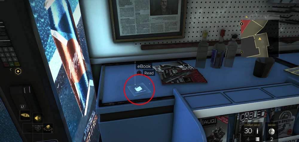 Ebook (электронные книги) представляют собой небольшие планшеты с чтивом о виртуальном мире, в котором разворачиваются действия Deus Ex Mankind Divided. За сбор их Герой получит очки опыта XP, а если собрать их все и прочитать, то и достижение/трофей «Коллекционер планшетов» (Tablet Collector).