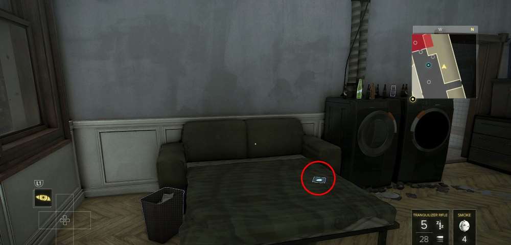 Квартира близ КПП, на востоке района. Используйте лифт, дабы подняться на балкон. Заходите в квартиру, и на стеклянном обеденном столе найдется искомое.