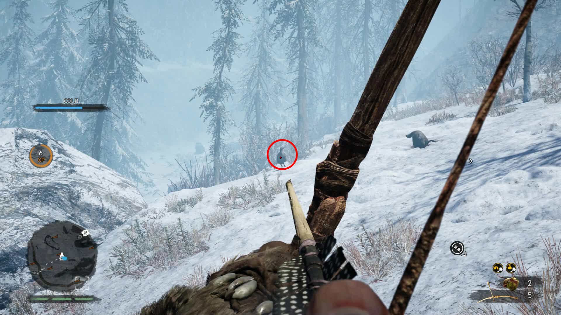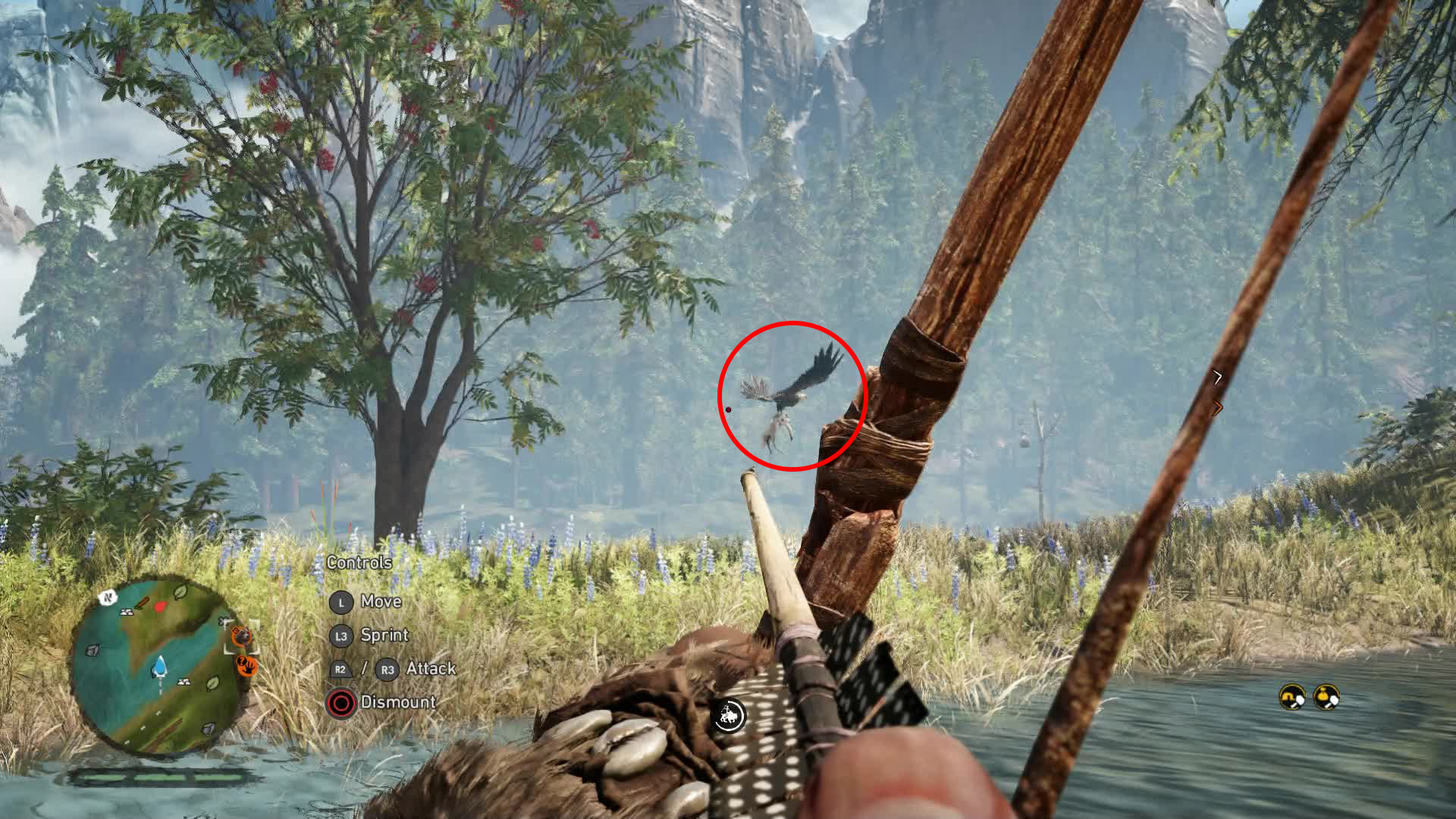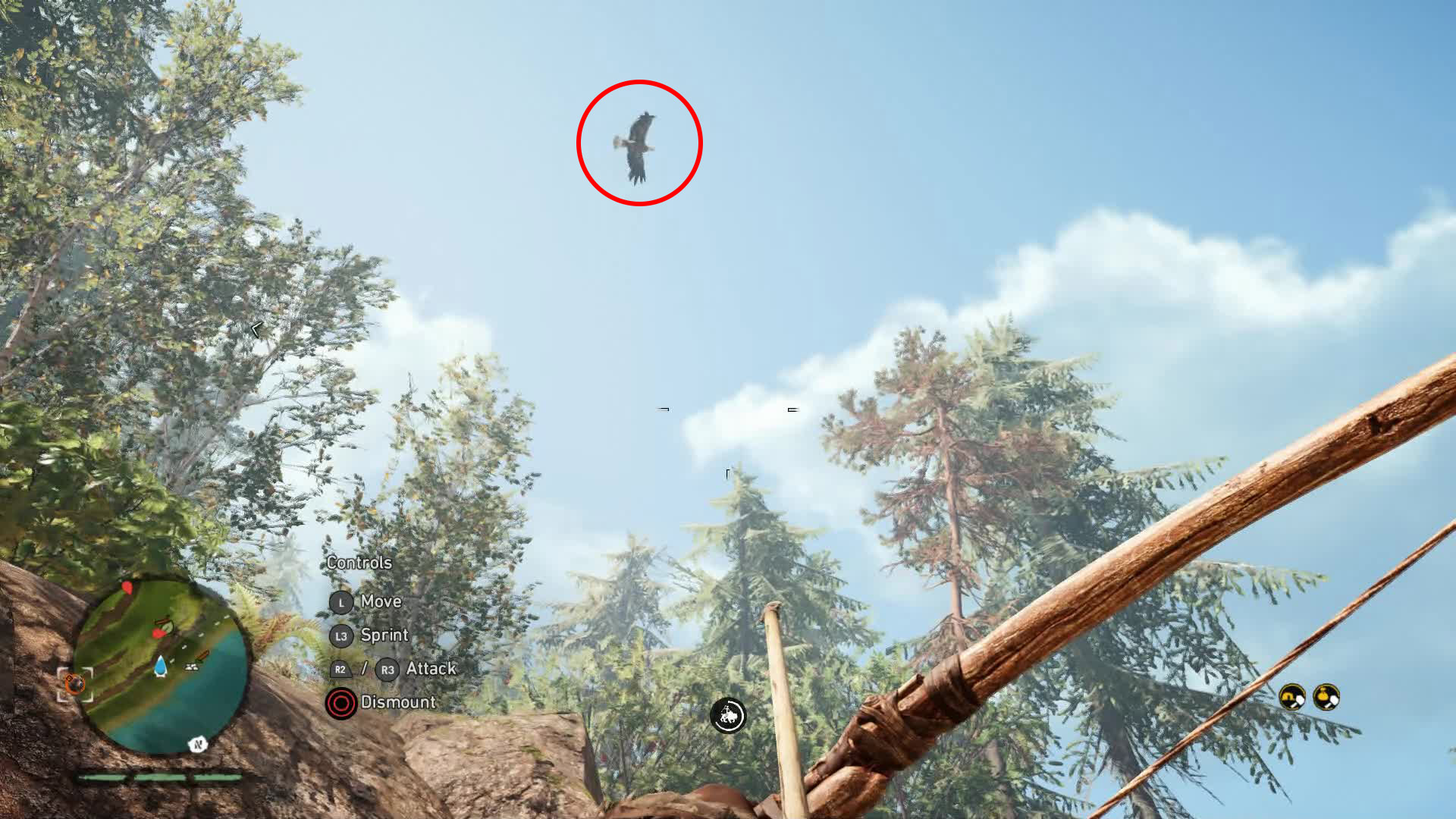Если есть желание начать охоту на Орла, то тоже есть более простой способ. Используйте Зрение Охотника, дабы найти Орла. В некоторый момент времени он начнет пикировать для захвата пищи. На земле он пробудет около пары секунд, затем медленно будет подниматься. В это время вы можете его легко убить. Это гораздо проще, чем ловить его в воздухе – скорость у него не маленькая, да и двигается постоянно.