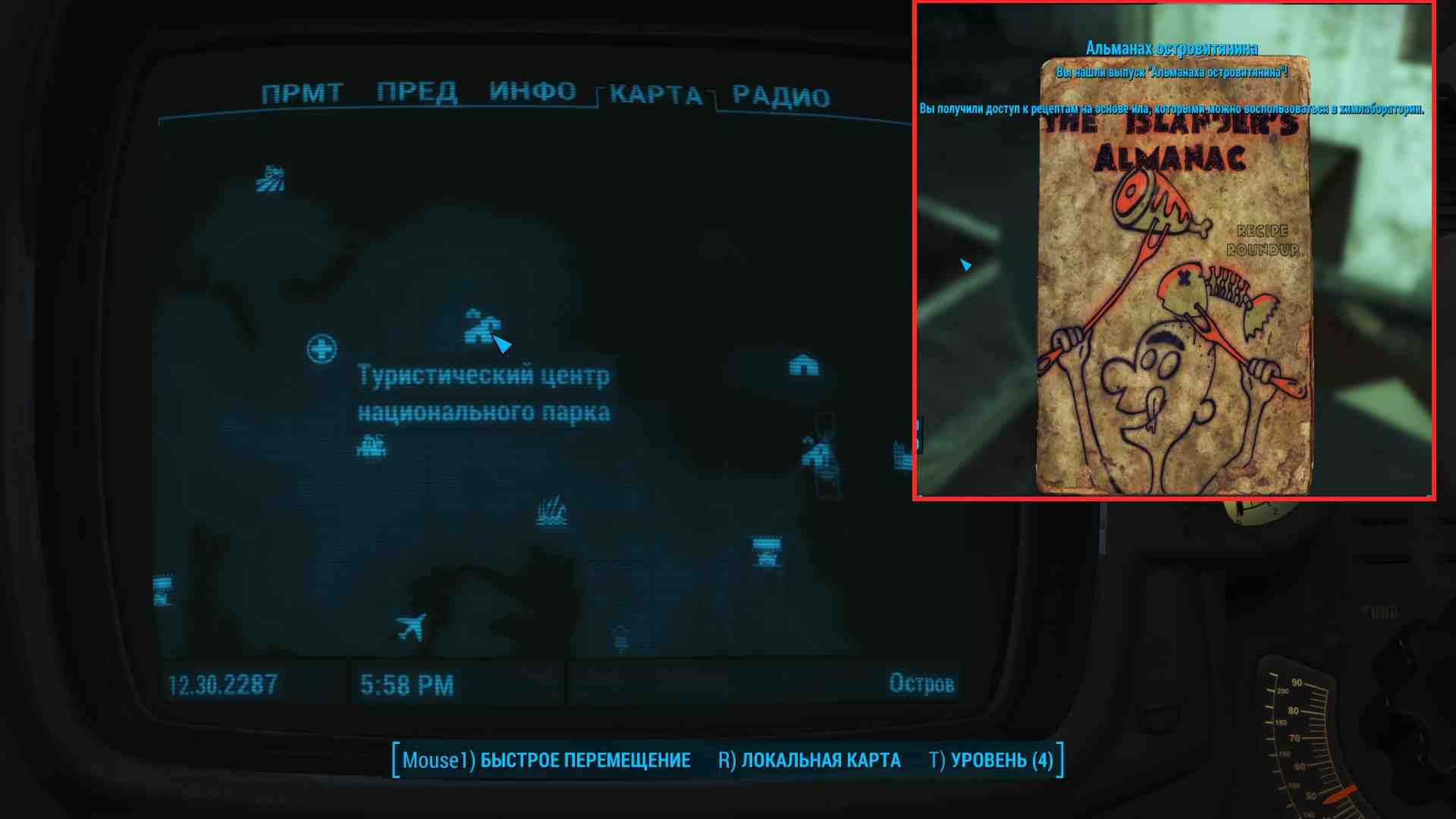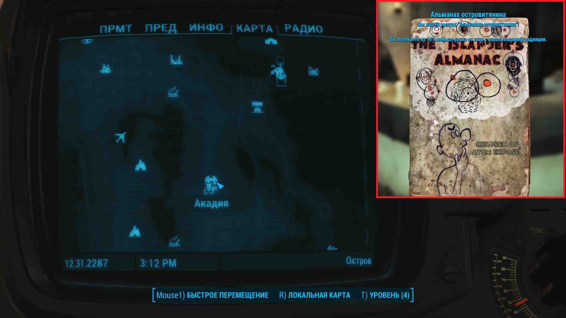 Альманах островитянина – новый журнал в DLC Far Harbor для Fallout 4. Всего существует 5 номеров, каждый из которых разблокирует тот или иной перк. Например, на карте появляются дополнительные объекты, или VATS шанс урона по животным и прочее и прочее. После сбора всех альманахов в игре разблокируется достижение/трофей «Альманах островитянина» (The Islander’s Almanac).