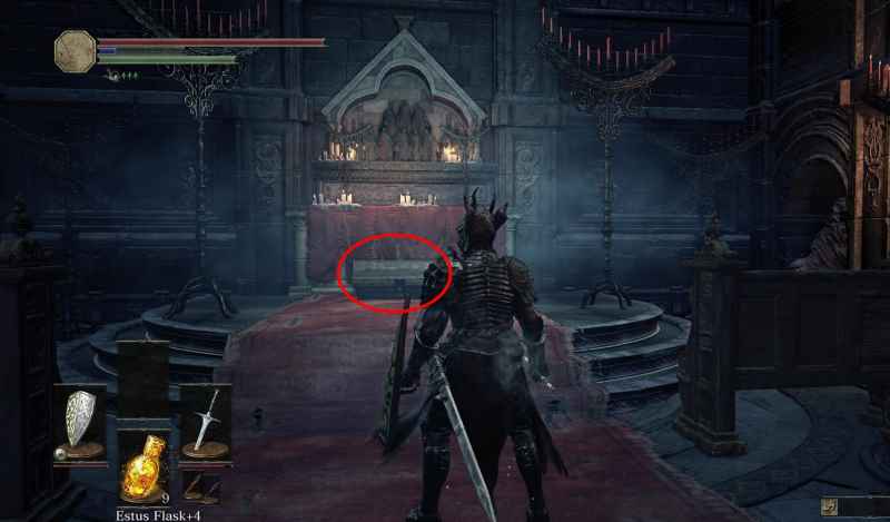 Как добраться: В соборе есть комната с мимиком и алтарем. Нужный костер именуется как Часовня очищения. Находится она близ огромной площади, где есть два гиганта. Близ одного из них проход справа в комнату. Затем по лестнице справа и попадете к алтарю. У алтаря сундук с ловушкой, в нем и находится фолиант магии.