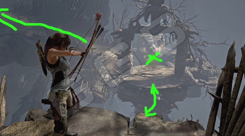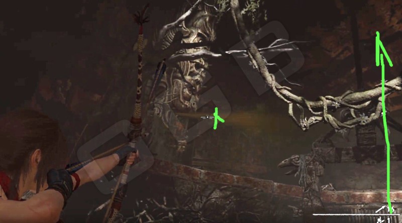 Спустя время Лара окажется пред головоломкой (если её можно так назвать). Сначала предстоит с большого расстояния выстрелить по струе газа, чтобы взрыв толкнул качающуюся платформу к вам. Прыгайте на неё и окажитесь на другой стороне.