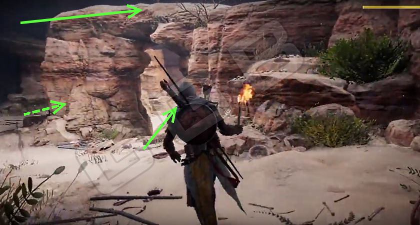Как войдете, идите по проходу и окажетесь перед логовом львиц. Дабы не разбудить их, заберитесь на скалу справа и убейте их из лука. Затем спускайтесь в их логово, где вас ждет сокровище. Кусочек кварца найдётся на скале рядом.