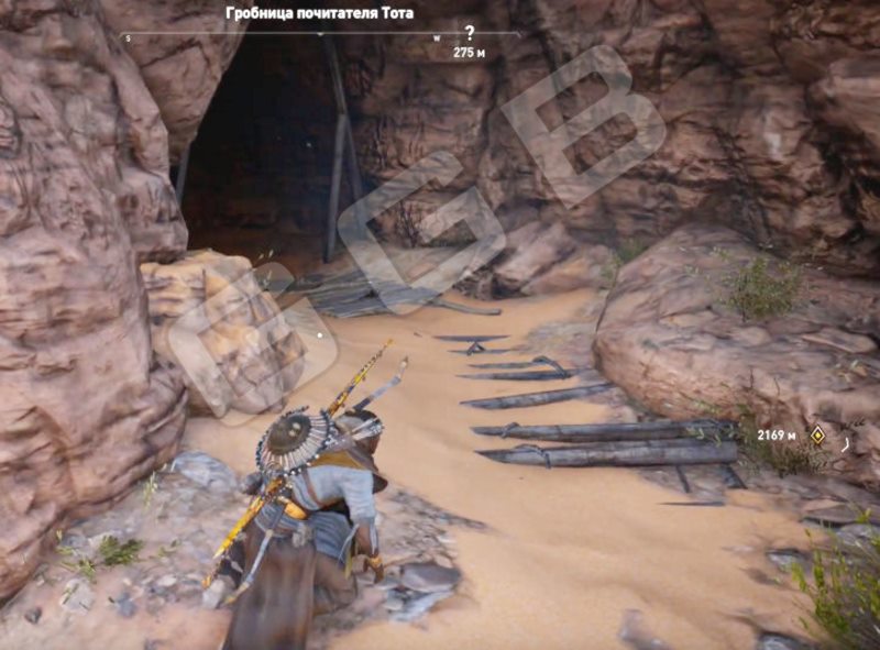Гробница почитателя Тота – одна из 14 гробниц в Assassin’s Creed Origins, что находится на территории Гизы. При тщательном изучении Байек сможет получить 5 единицы кварца, найти 6 сокровищ. Древнего механизма здесь нет.