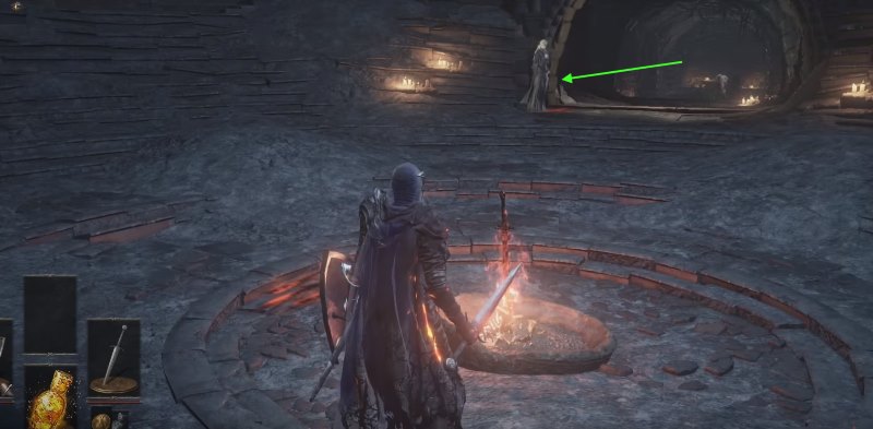 После победы над боссом не используйте костер, а обратите внимание на надпись на земле рядом с ним. Активируйте её и призовите Хранительницу Огня.