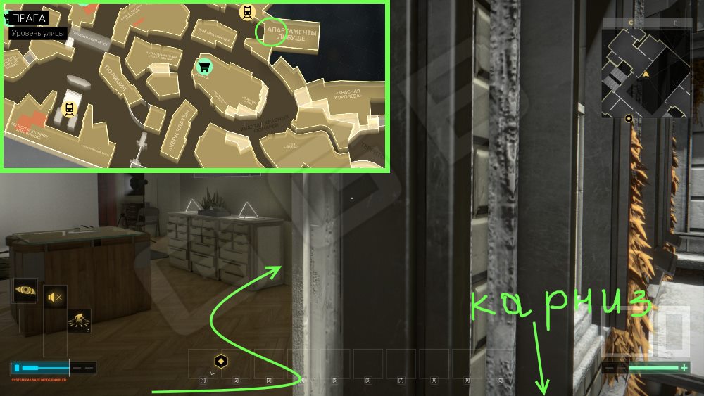 Также в подвал можно пройти путем использования вентиляционной шахты из магазина напротив «Винный магазин Хемингуэя», но тогда вам нужна аугментация пробивания стен.