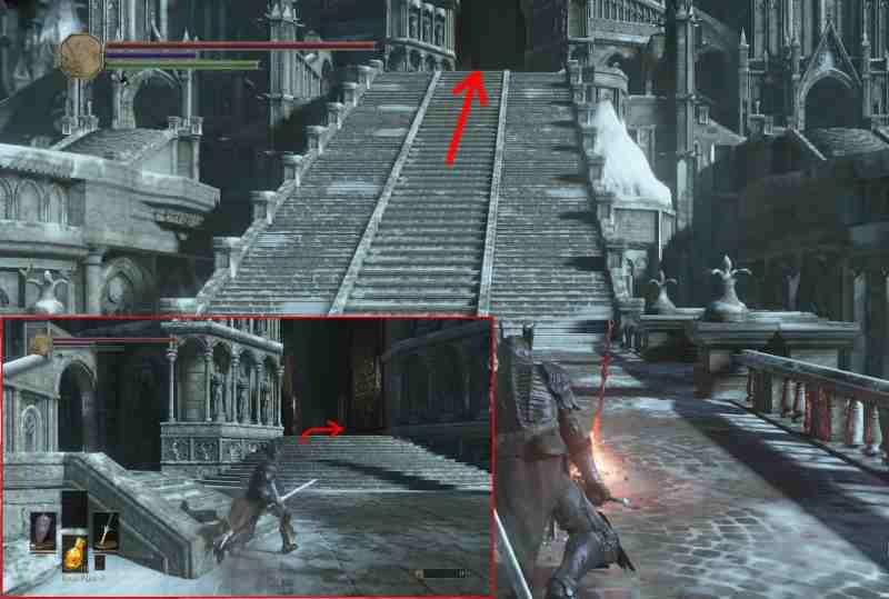 Отправляйтесь в Анор Лондо и спускайтесь по крутящемуся мосту в гробницу. Или по крышам через башню (здесь подробнее). Возьмите у паломника, что стоит у входа, меч и проведите ритуал.