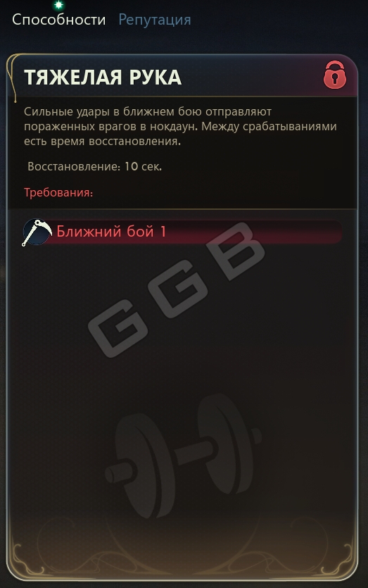 - Тяжелая рука: силовые атаки ближнего боя сбивают врагов с ног.