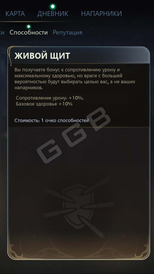 - Живой щит: +10% к сопротивлению урону, +10% к базовому здоровью