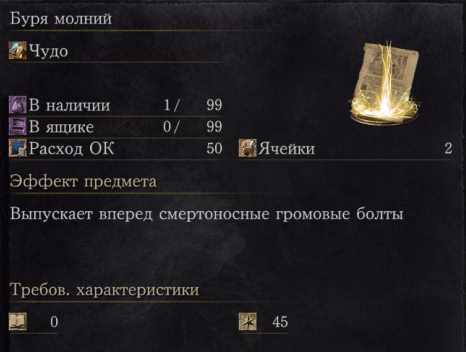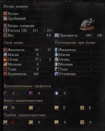 Требуется для использования: Вера – 10, интеллект – 10, Ловкость – 10, Сила – 20