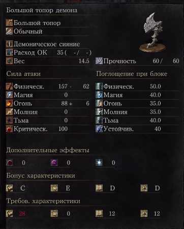 Топор с навыком Демоническое сияние. Призовите пламя, содержащееся в оружии, и обрушьте его на врагов.