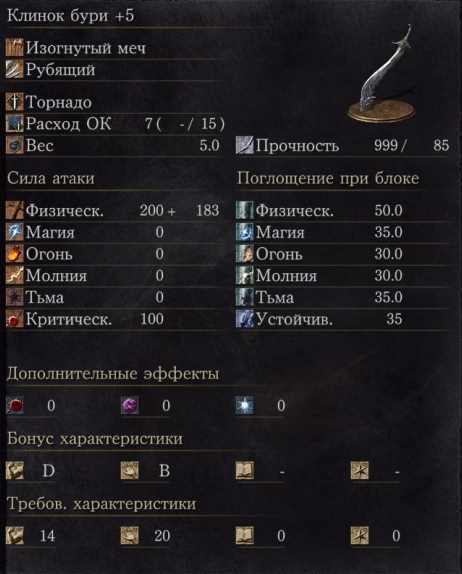 Своеобразный изогнутый меч с навыком Торнадо. Размашистое движение наполнит клинок яростью бури, а сильная атака обрушит эту ярость на врагов.