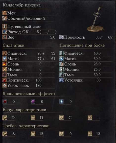 И это меч, одноручный, с навыком Путеводный свет. Свеча — временный дополнительный источник света, повышающий видимость.