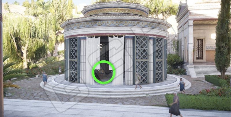 На востоке Зеленых гор есть город Балагре. На востоке его находится Храм Асклепия. В беседке на столике и будет лежать свиток папируса.