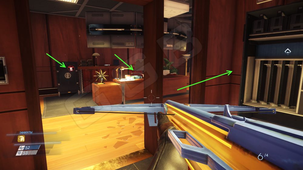 Где активировать: сначала вам потребуется арбалет Дротикомет «Охотница». Находится он под столом в секции «Отдел продаж» на 3-ем этаже. Попасть туда вы сможете уже после просмотра видео в кабинете Морган Ю. Из него вы пройдете в Центр телеконференций и затем по прямой доберетесь до офисов продаж.
