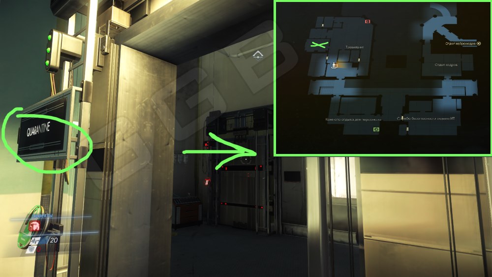 Где активировать: Достаточно часто в холле вам будут попадаться карты-ключи от Травмпункта на 2-ом этаже. Здесь есть офис доктора Девриса (2). Внутри сейф. Чтобы попасть сюда вам либо нужно найти ключ-карту, Либо иметь способность мутации.