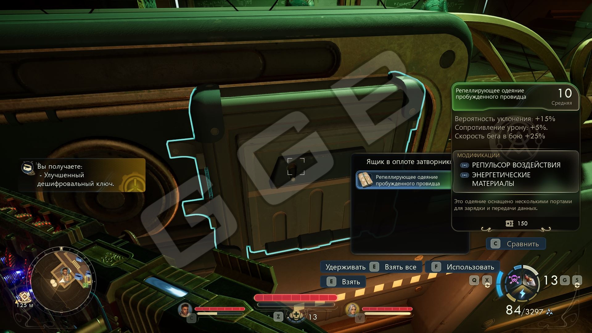 - Бонусная добыча в ящике: Улучшенный дешифровальный ключ, металлолом, сырая биомасса, энергетический баллон и фольга.