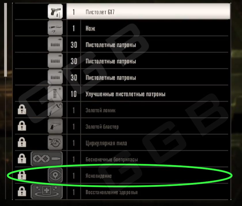 Боеприпасов может не хватать во время порождения, поэтому старайтесь сразу наносить удар в голову. Более того, в начале игры появится возможность разблокировать навык Ясновидение (после прохождения Гостевой домик 1 ранг В). Он позволит вам подсвечивать те предметы, что можно забрать с собой.