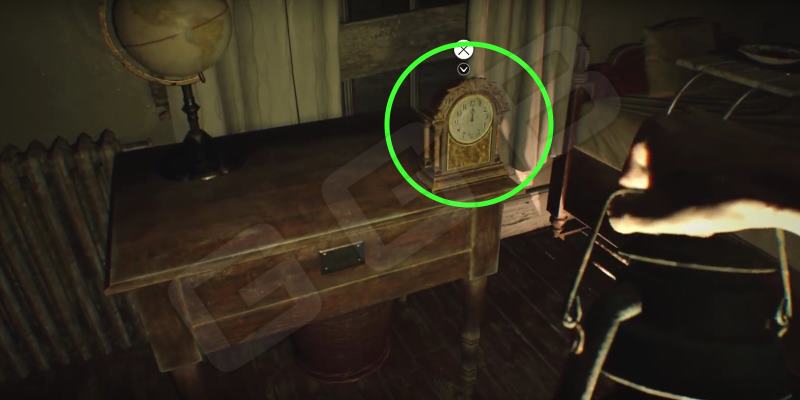 - Подойдите к часам на другой стороне кровати и осмотрите их. Возьмите сломанную часовую стрелку.