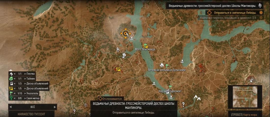 Святилище Лебеды, что на северо-западе от указателя мост Плегмунда. Здесь вам предстоит сломать стену с помощью знака Аард, а затем убить призрака. После этого в сундуке обнаружатся нужные чертежи.