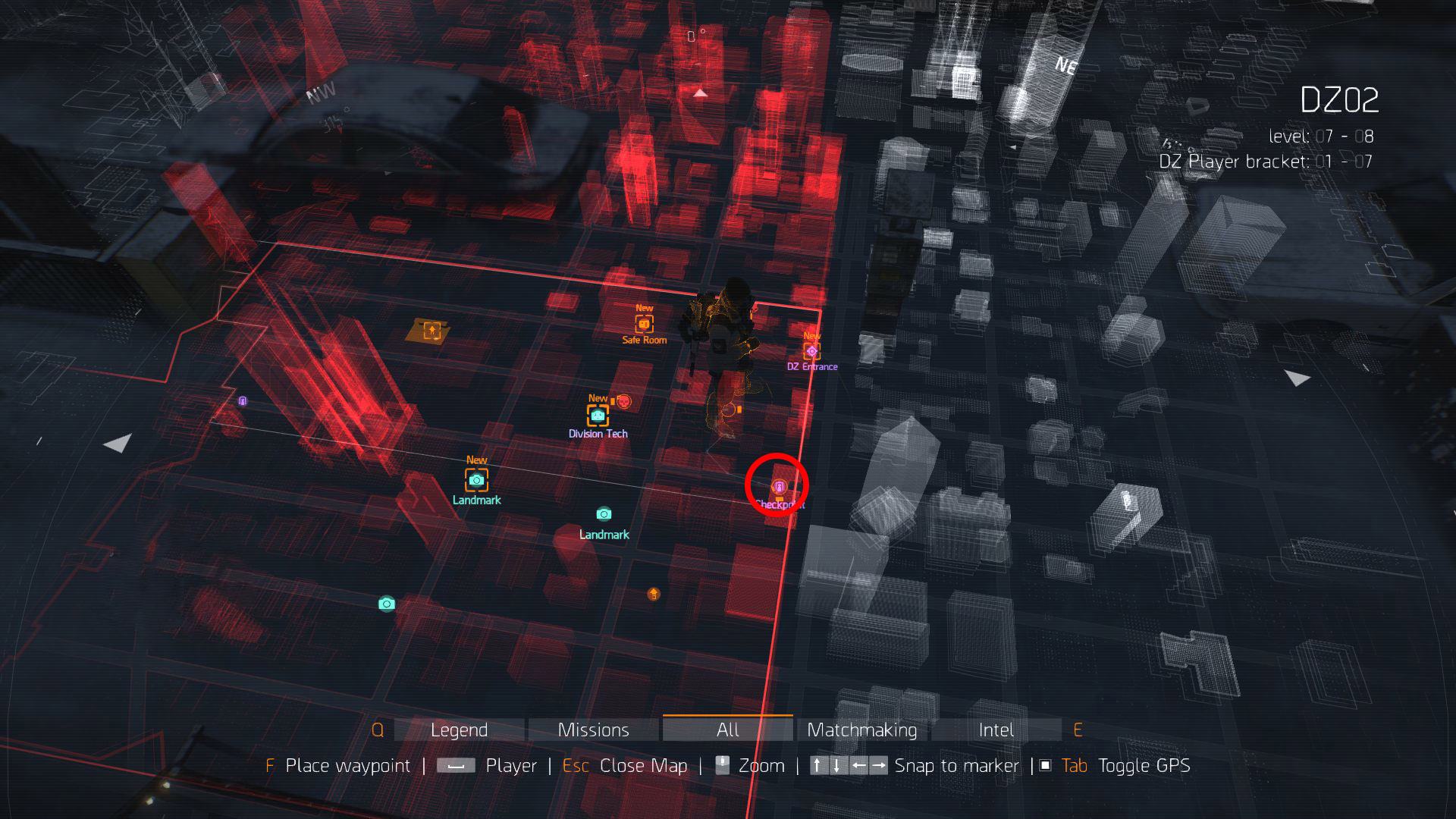 Восточный вход в Темную Зону 02 (ТЗ02), что находится на углу 34-й улицы и Парк-авеню, что на востоке от Эмпайр Стейт Билдинг. Для удобства нахождения, разыщите знак ТЗ02E. Когда войдёте на КПП увидите тот же знак внутри, это подтвердит, что вы в правильном месте.