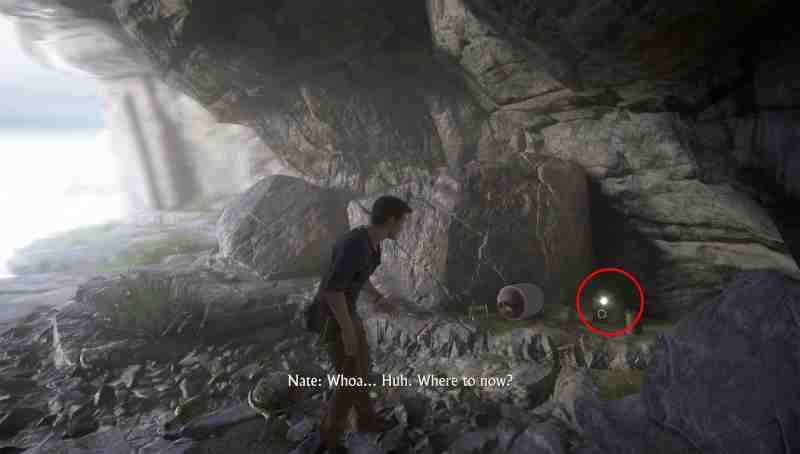 Добравшись до скалы с самым большим водопадом, используйте крюк-кошку, чтобы попасть в пещеру за водопадом. В ней идите в левый вход и отсмотрите скалы по левой стороне. На земле и найдется искомое.