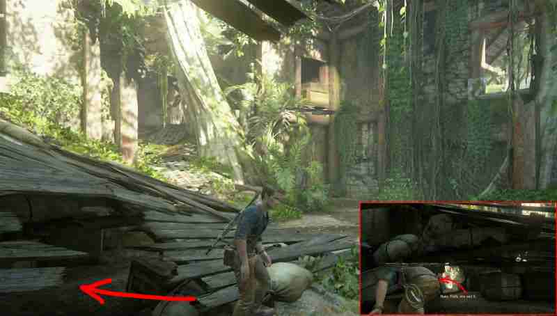 После воссоединения с Сэмом, так или иначе, вы попадете в древние развалины. В одном из углов найдется древесный навес. Спрыгните вниз под него и окажитесь в небольшой комнате. Поверните направо, спрыгните и пройдите под полом в дальней стороне. Там в углу (правом) и найдется сокровище.