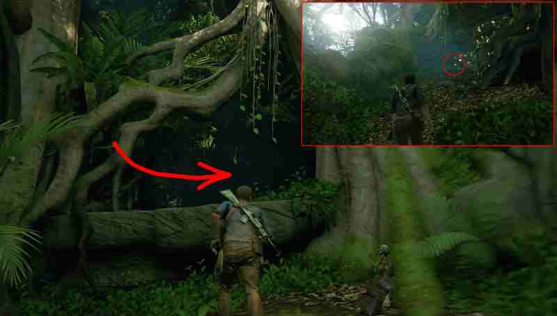 Попав в джунгли, вам придется много прыгать, дабы избежать преследователей. Когда закончите прыжки, вас ожидает густая роща. Взберитесь по всем уступам скалам слева от вас и в густоте зелени пройдите вперед, где и обнаружится искомое.