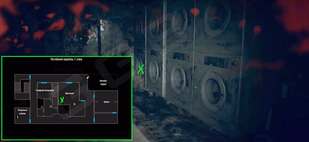 Монета 25. Погибший корабль, первый этаж, Прачечная. Как войдете, справа вдоль стены будет ряд стиральных машин. В самой дальней, последней, и будет монетка.