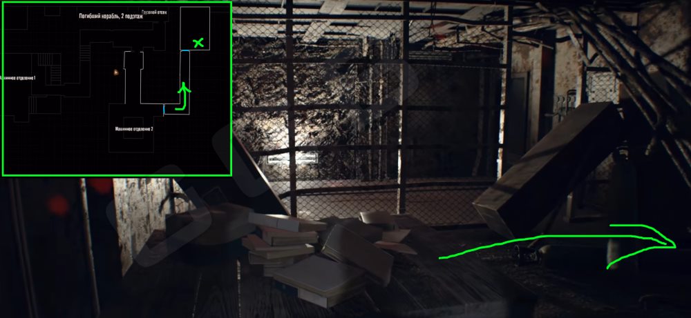 Монета 31. Погибший корабль, второй подэтаж. Машинное отделение 1. Вам потребуется выйти из отделения по лестницам в сторону Грузового отсека. Двигайтесь по лестнице, проходите двери на пути и мимо вывески Exit. На стене найдется ящичек, замок которого необходимо расплавить.