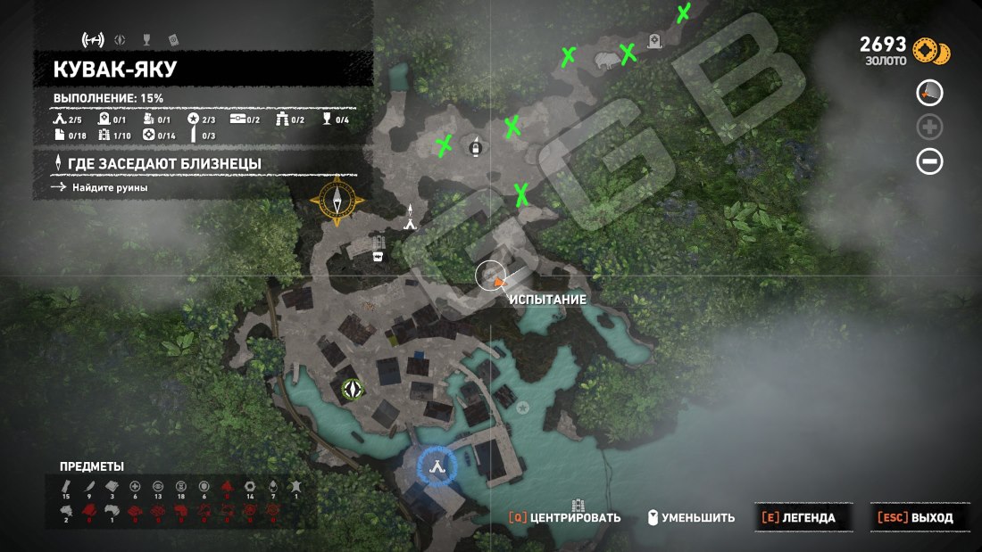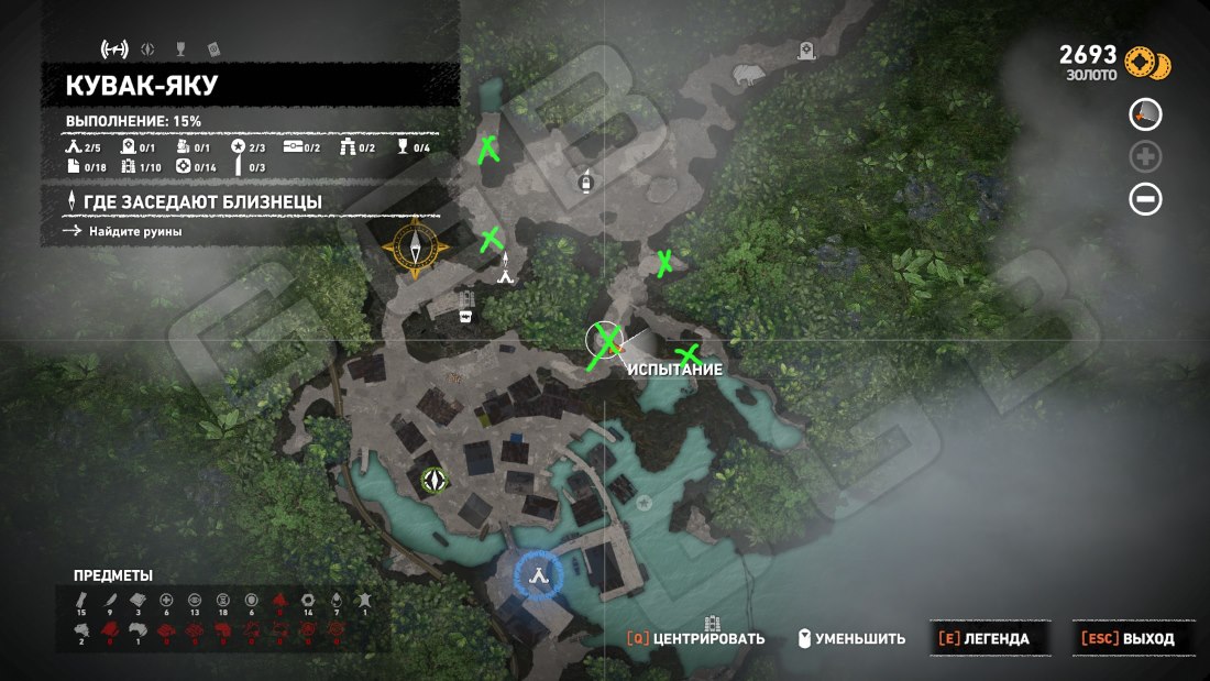 Это испытание можно начать сразу у лагеря Руины Кувак-Яку, что направо перед храмом Жизни. Всего-то и требуется взорвать пять бочек. Красных. Все они размещены на северо-востоке поселения. Смотрите карту.