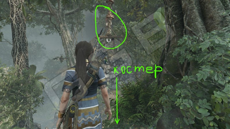 Потребуется собрать три пера кондора из птичьих гнезд. Все они почти рядом, но один в Заброшенной деревне на пути к первому склепу, когда потребуется перекинуть канат над озером. В общем, находим гнезда и берем перья. Подробности на картах.