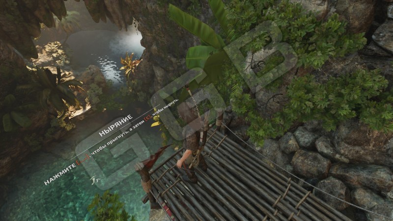 Совершить прыжки с четырех трамплинов. Похожее испытание из Rise of the Tomb Raider. Деревянные платформы расположены во всем регионе. И в деревне, и в Пайтити. Сложность этого испытания в том, чтобы прожать нужные клавиши в нужное время. Если подойти к платформе и нажать прыжок (пробел) + С (ныряние), то Лара просто свалится в воду. Ускорьтесь при заходе на трамплин (Shift + W) – нам это помогло, но можете попробовать и без shift, затем, не отпуская эти клавиши, нажимаем пробел. Лара прыгает и, сразу же, прожимайте С. В итоге, Лара нырнет «рыбкой».