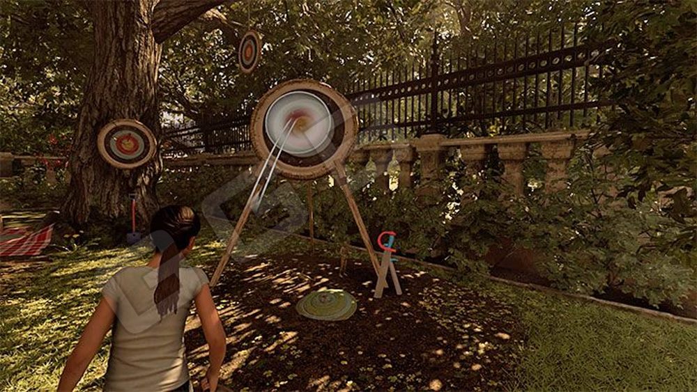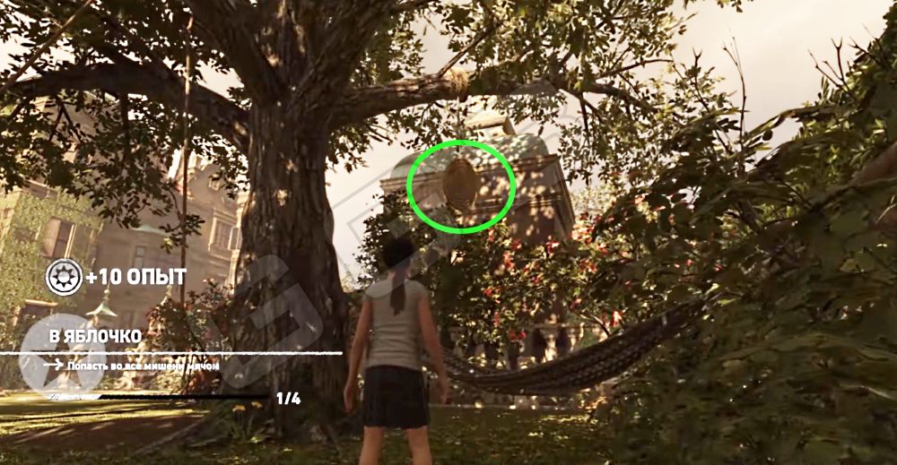Это испытание доступно в Ретроспективе Особняк Крофт, когда предстоит играть за маленькую Лару. На детской площадке слева от начала игры есть три мишени. Также в области разбросаны метальные гири. Этими гирями и нужно попасть в эти мишени. Всего мишеней 4. Три слева и одна вдалеке за садом, за Ларой в начале уровня, у гамака.