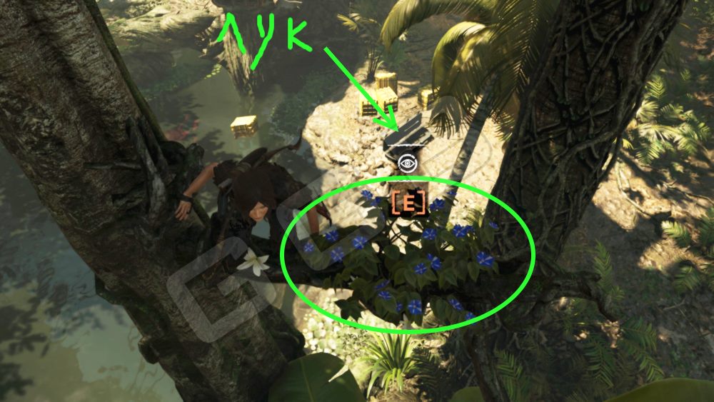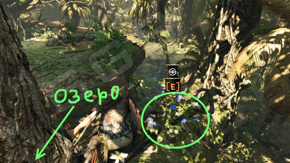 Подробнее смотрим карту ниже. Цветы и ветки также находятся вокруг озера и над местом падения ящика со снаряжением (из сети).