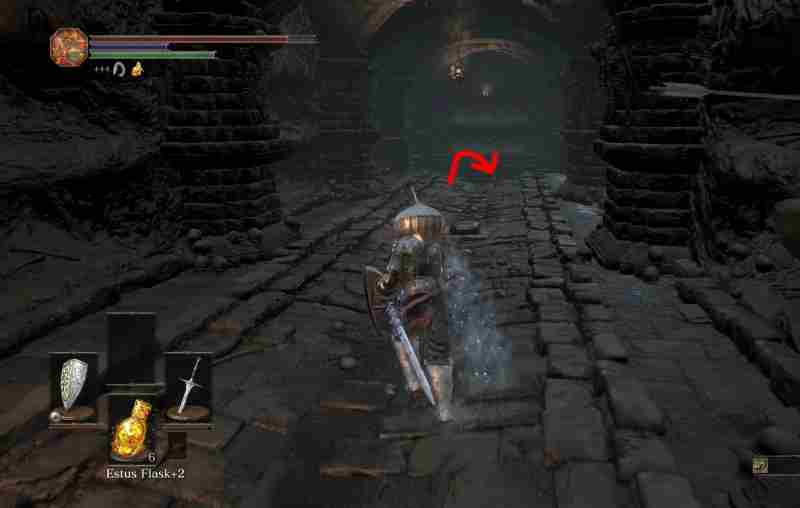 Район Тлеющего озера, точнее под ним. Пройдите через могильную комнату и идите по коридору до небольшого отверстия полу. Спрыгните вниз и бегите по коридору к выходу. Поднимитесь по лестнице и увидите слева огромного мертвого паука. Книга у него.