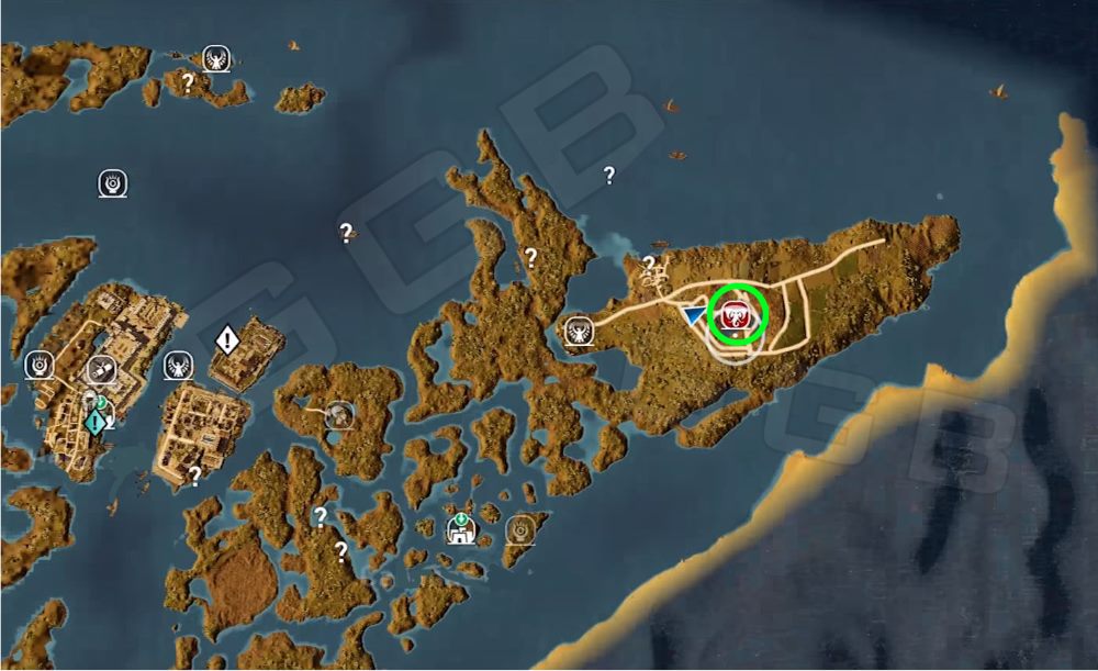 Джумбе – Ном Гераклион (северо-восток карты). Все дороги локации будут вести к самому большому куску земли и мысу, и одноименному римскому лагерю, и именно здесь находится босс.