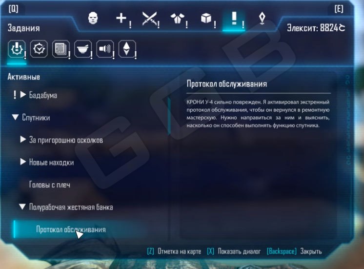 - В начале игры изучите останки Крони У-3 (он попадется на пути). Это запустит квест «Протокол обслуживания».
