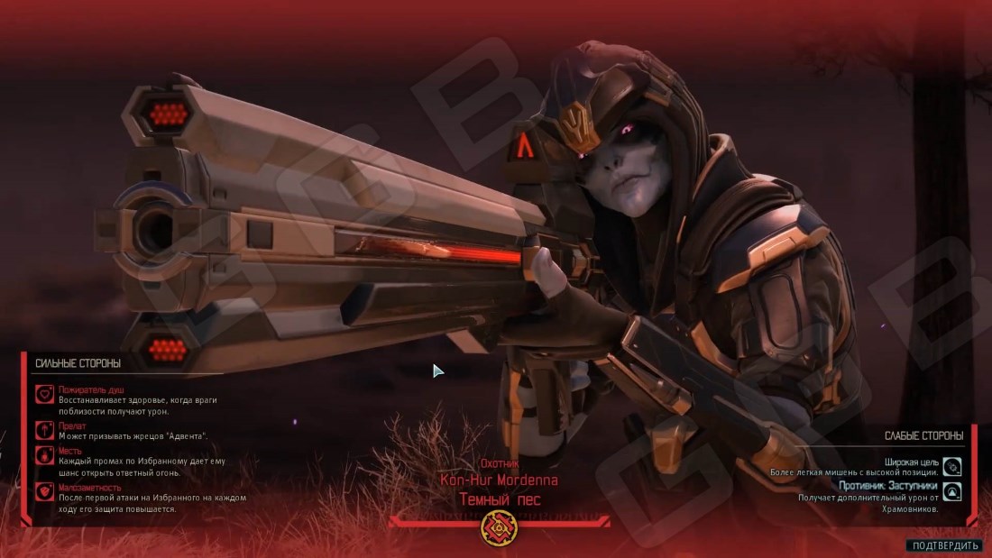 Избранный Охотник, Темный пес, Проклятый следопыт, обладатель множества имен – еще один новый босс из трех в дополнении War of the Chosen (Война Избранных) для тактической стратегии XCOM 2. Охотник – своеобразный аналог снайпера, проще говоря. Но он гораздо более эффективный на поле боя. Его способности и оружие позволяют нанести урон цели, что может находиться даже на другом конце карты, при этом Охотнику достаточно только выстрелить. Он также использует крюк-кошку и может получить доступ к крышам и балконам зданий, чтобы передвигаться по карте чуть более удобнее. Все это делает его грозным врагом, особенно если он далеко в тылу своих солдат.