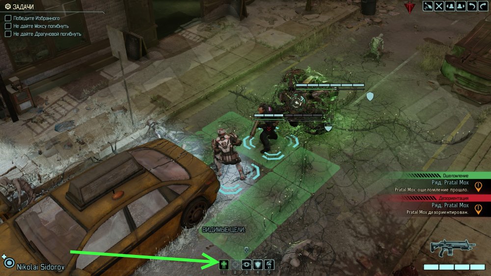 Важно: Если солдат ошеломлен, его могут захватить в плен. Чтобы избежать оного, оживите такого солдата с помощью соответствующей способности, что появится автоматически у любого из напарников, кто к нему подойдет. Возрожденный солдат станет дезориентированным на один ход.