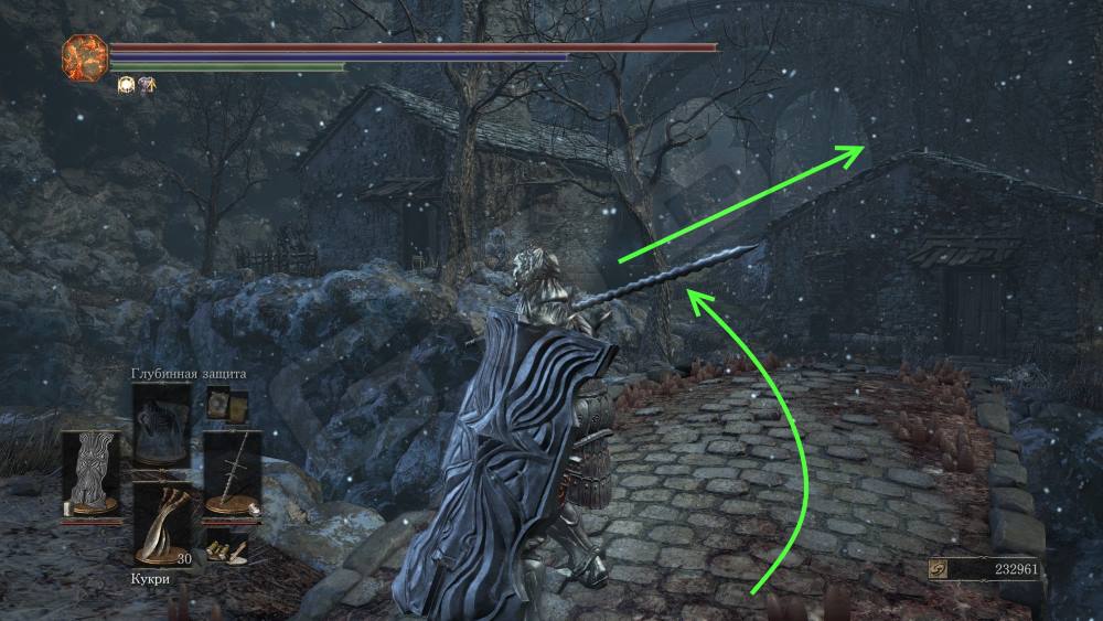Вам потребуется посетить Поселение воронов и часовню Воронов. Для этого от костра Поселения идите вперед и перейдите мост. Затем поднимитесь вверх по склонам, где будет очень много врагов, и достигните забора и врат часовни.